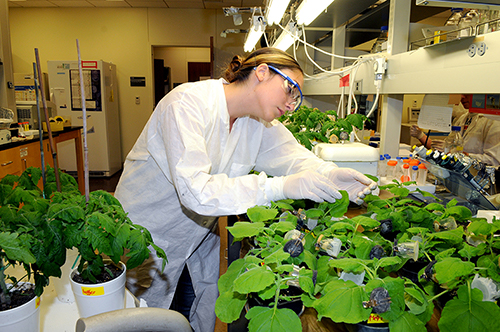 nematology student with plants (c) UCR / CNAS